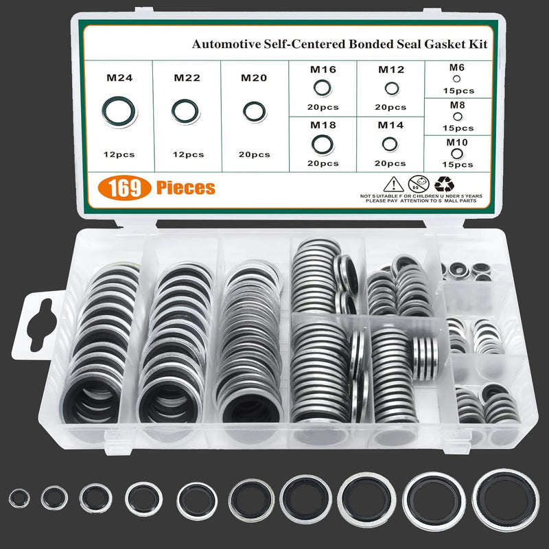 169 PCS Automotive Self-Centered Bonded Seal/Gasket Assortment