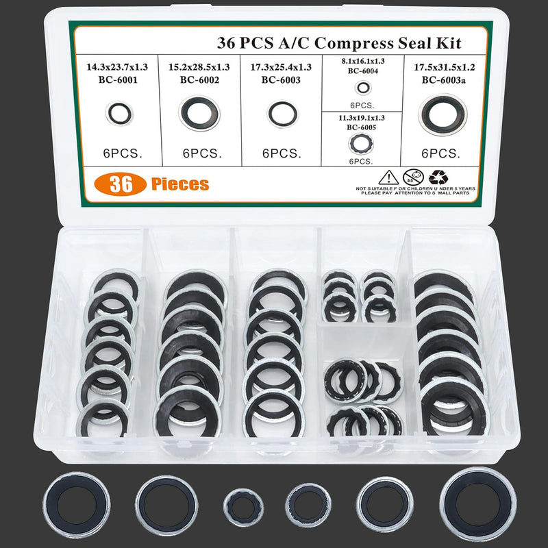 36 PCS A/C System Compressor Gasket Seals Air Conditioning Compressor Port Seal Washer Kit