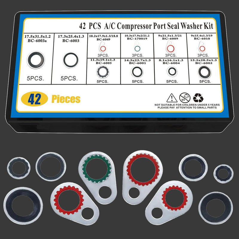 42 PCS A/C System Compressor Gasket Seals Air Conditioning Compressor Port Seal Washer Kit